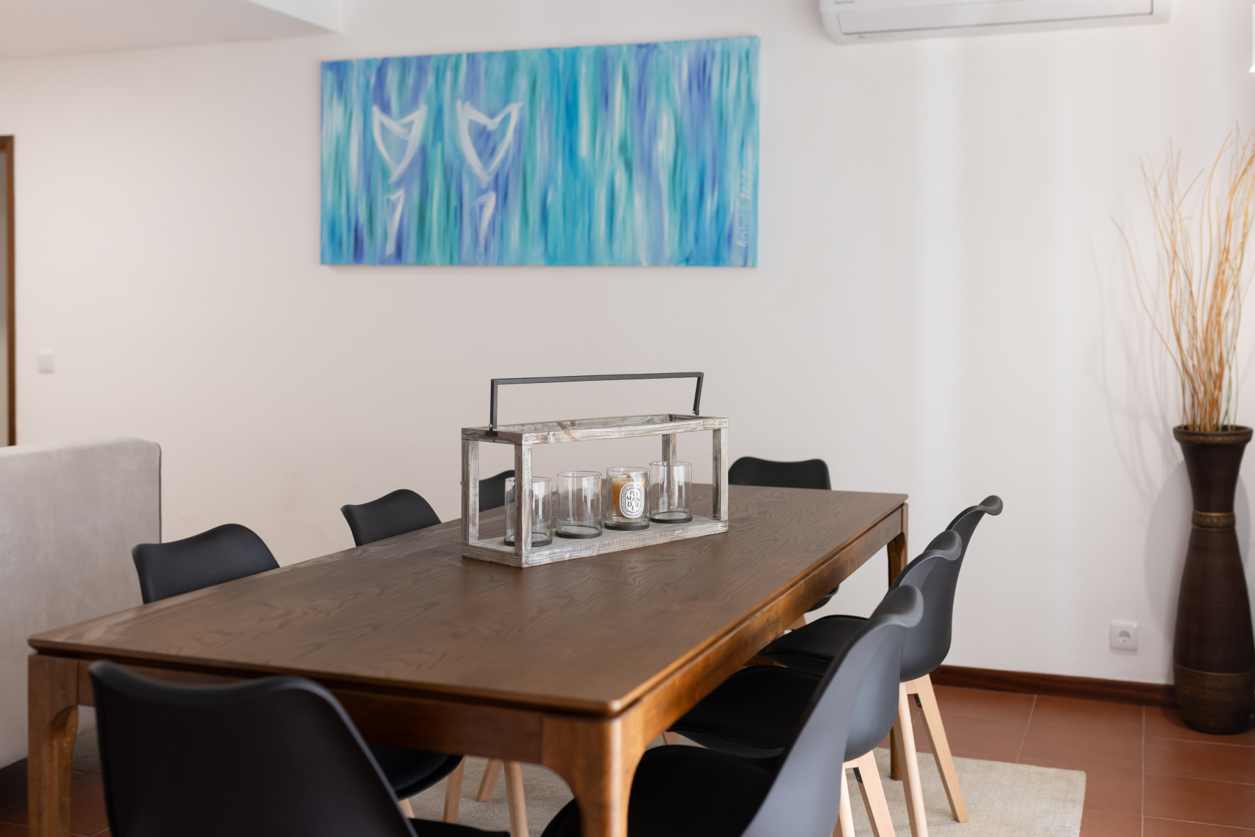 Espaço exterior de refeições com churrasqueira