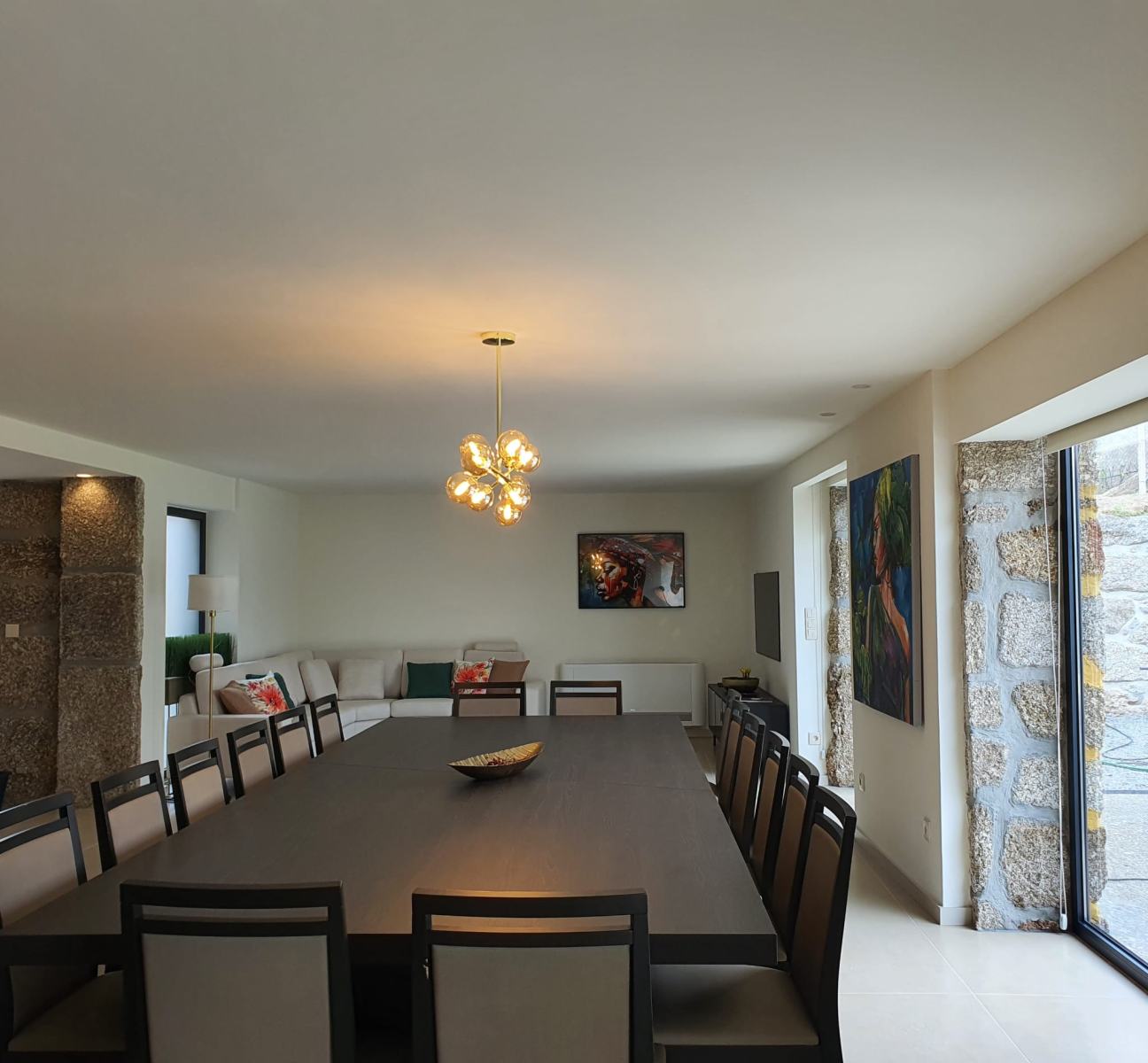 Sala de estar com vista jardim e piscina